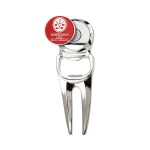 La fourchette de golf solaire avec marqueur de balle magnétique a un aspect argent brossé.